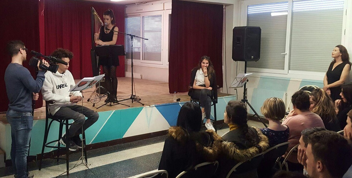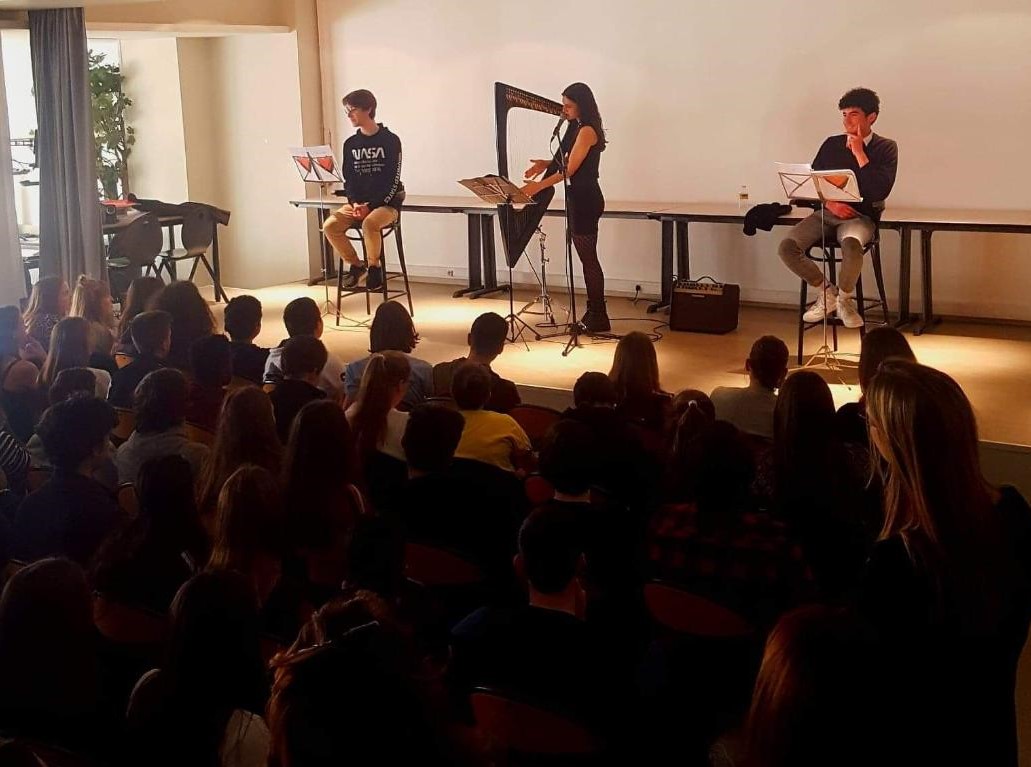 Le principe était que les élèves produisent de leur côté, en amont, des lettres d’amour et les lisent devant le public, accompagnés par la harpe.